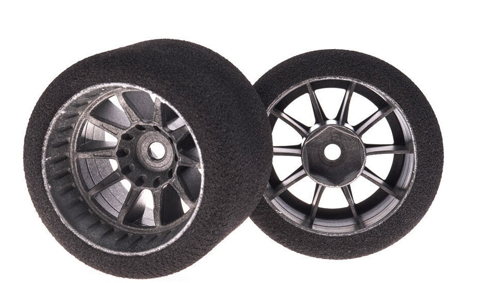 Contents: 1 pair of sponge rubber rear tires (35 Shore), ready sanded and glued to rims.